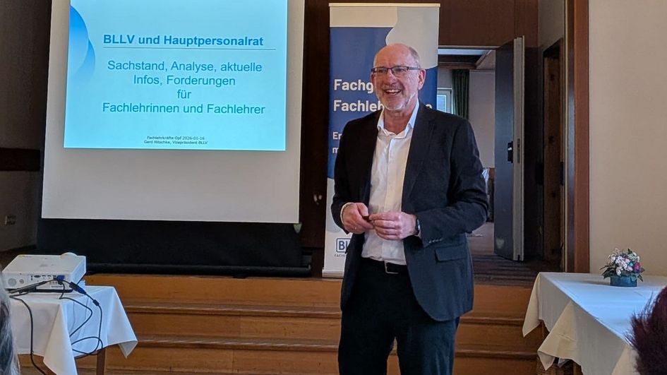 Aktuelle Informationen aus Verband und Politik vermittelten der Hauptpersonalrat sowie der BLLV-Vizepräsident Gerd Nitschke. Zentrale Themen waren die laufenden Tarifverhandlungen, die Forderung nach einer Besoldungserhöhung von 7 Prozent beziehungsweise mindestens 300 Euro sowie die klare Position des BLLV, dass Lehrkräfte Beamte bleiben müssen. Auch die geplante Reform der Lehrerbildung wurde kritisch beleuchtet. Zwar wird mehr Praxis in der Ausbildung begrüßt, jedoch bleibt offen, welche Rolle die Fachlehrkräfte künftig einnehmen und wie ihre Ausbildung gestaltet wird. Weitere Forderungen betrafen die Verbesserung der Arbeitsbedingungen, eine Reduzierung der Unterrichtspflichtzeit sowie zusätzliche Beförderungsämter. Positiv hervorgehoben wurde ein Schreiben der Ministerin, in dem die Arbeit der Fachlehrkräfte ausdrücklich gewürdigt wurde.