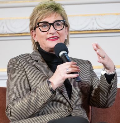 Simone Fleischmann, BLLV-Präsidentin und stellvertretende Bundesvorsitzende des dbb, betonte in einer Gesprächsrunde die Bedeutung von Demokratiepädagogik und zeigte sich begeistert von der Leistung der Schülerinnen und Schüler: