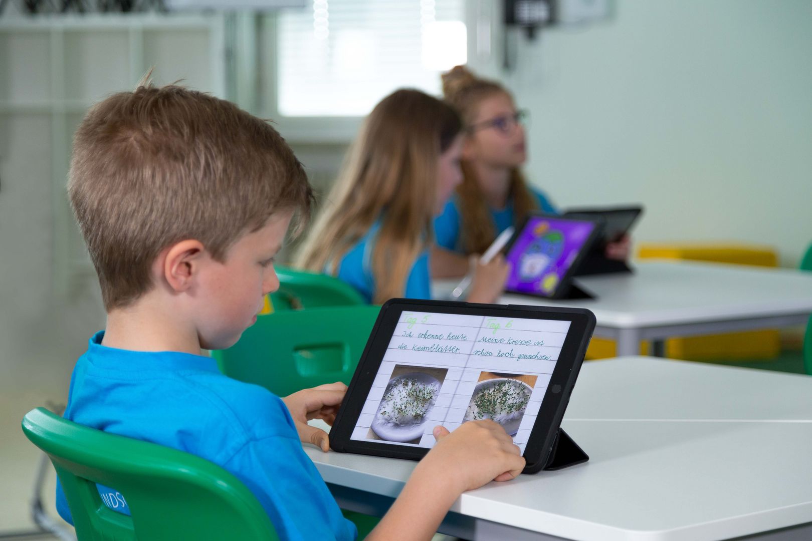 Lernen und Lehren steht dort unter dem Motto „KidZ – Kompetent in die Zukunft“. Um jedes Kind optimal zu fördern, trifft in den Klassenzimmern die klassische grüne Kreidetafel auf moderne digitale Tafeln und Tablets – eine Mischung aus analog und digital. Ein weiterer Baustein für mehr Bildungsgerechtigkeit ist die 1:1-Ausstattung: Jedes Kind erhält ab der 1. Klasse ein eigenes Tablet und einen passenden Stift.