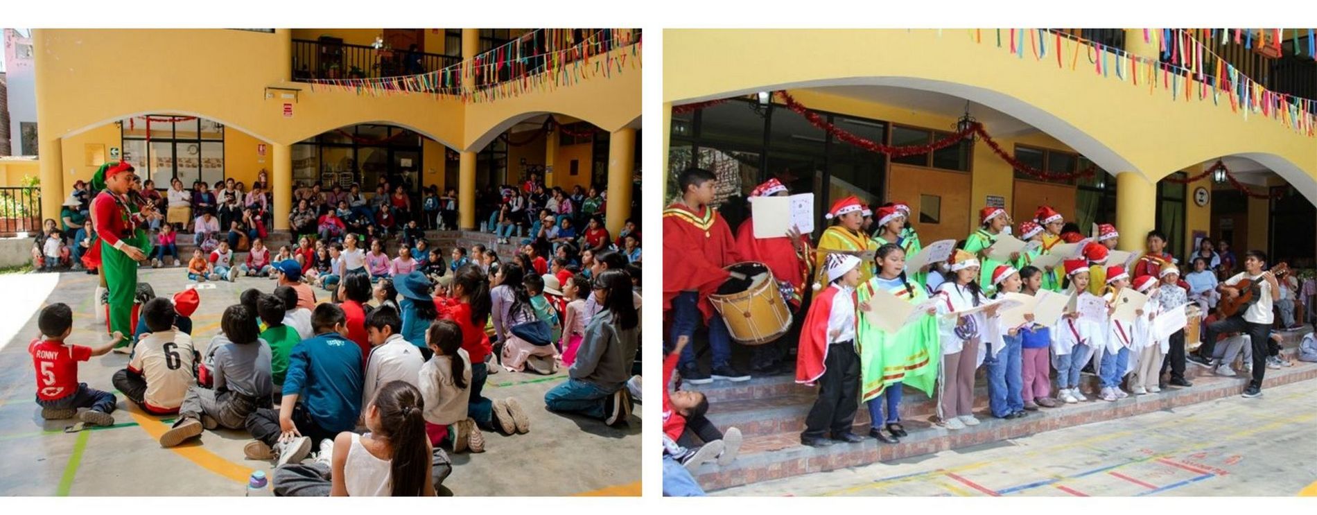 Große Freude herrschte am Samstag vor Weihnachten im Kinderhaus in Ayacucho. Fast 300 Kinder waren gekommen, viele mit ihren Müttern, um gemeinsam eine Chocolatada zu feiern. So heißt das Fest, an dem für alle heiße Schokolade ausgeschenkt wird. Dazu gab es leckeres Gebäck aus der Bäckerei des Kinderhauses. Nachdem alle satt und zufrieden waren, traten zwei Clowns auf. Mit Zauberstücken, Gesang und Spielen verzauberten sie die jungen Zuschauerinnen und Zuschauer. Große Ausgelassenheit erfüllte den Platz vor dem Kinderhaus. So viele lachende und glückliche Kindergesichter!