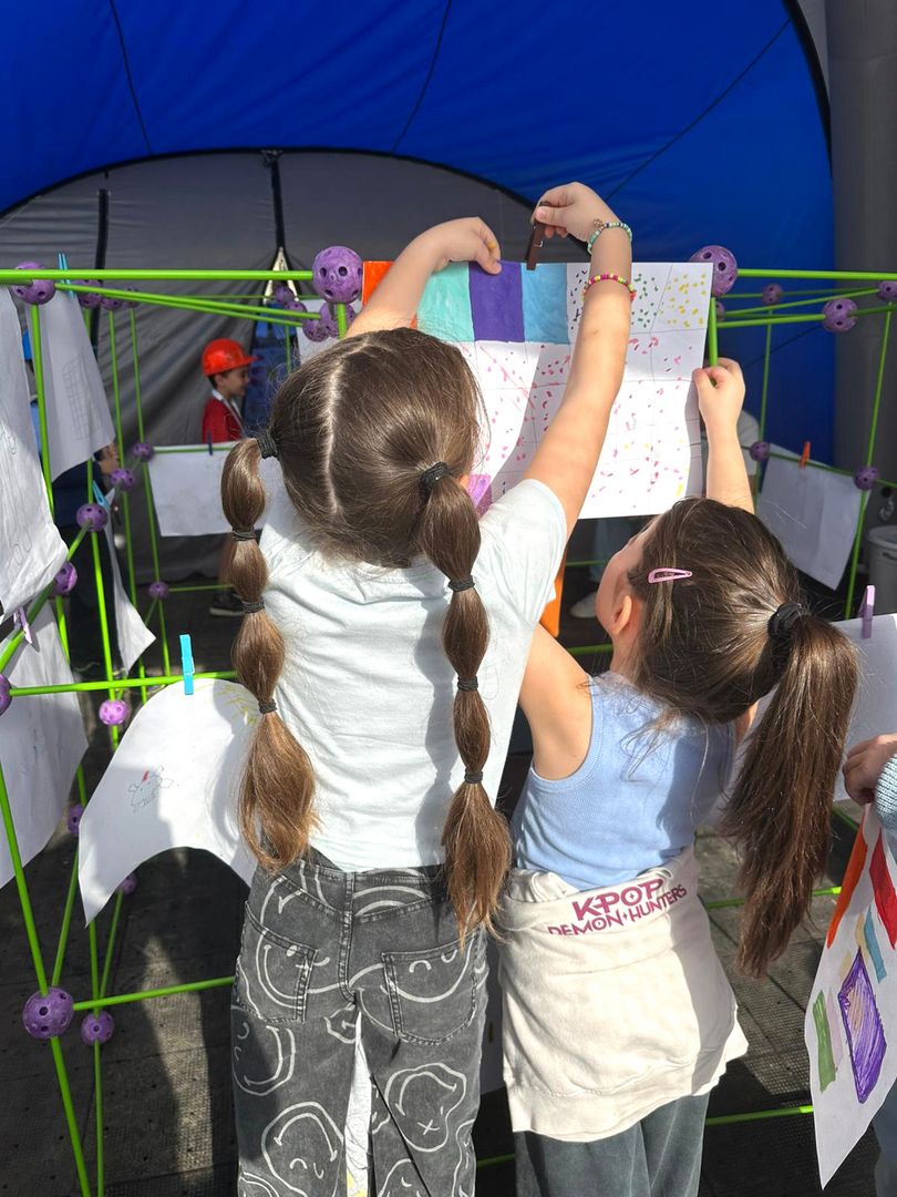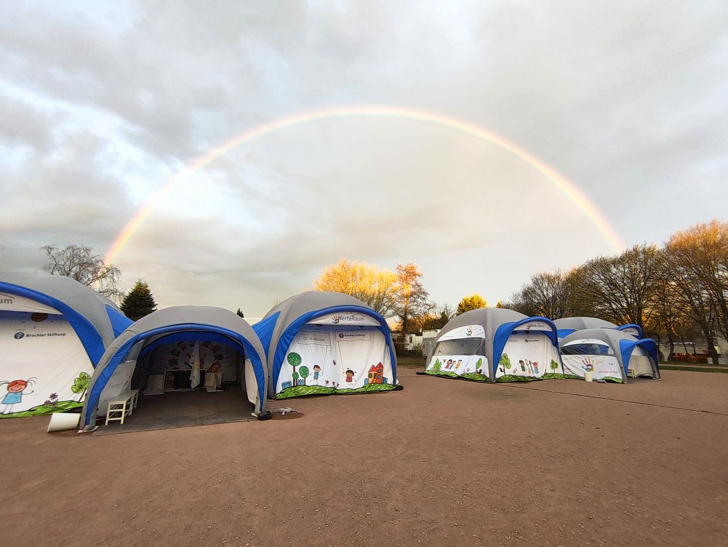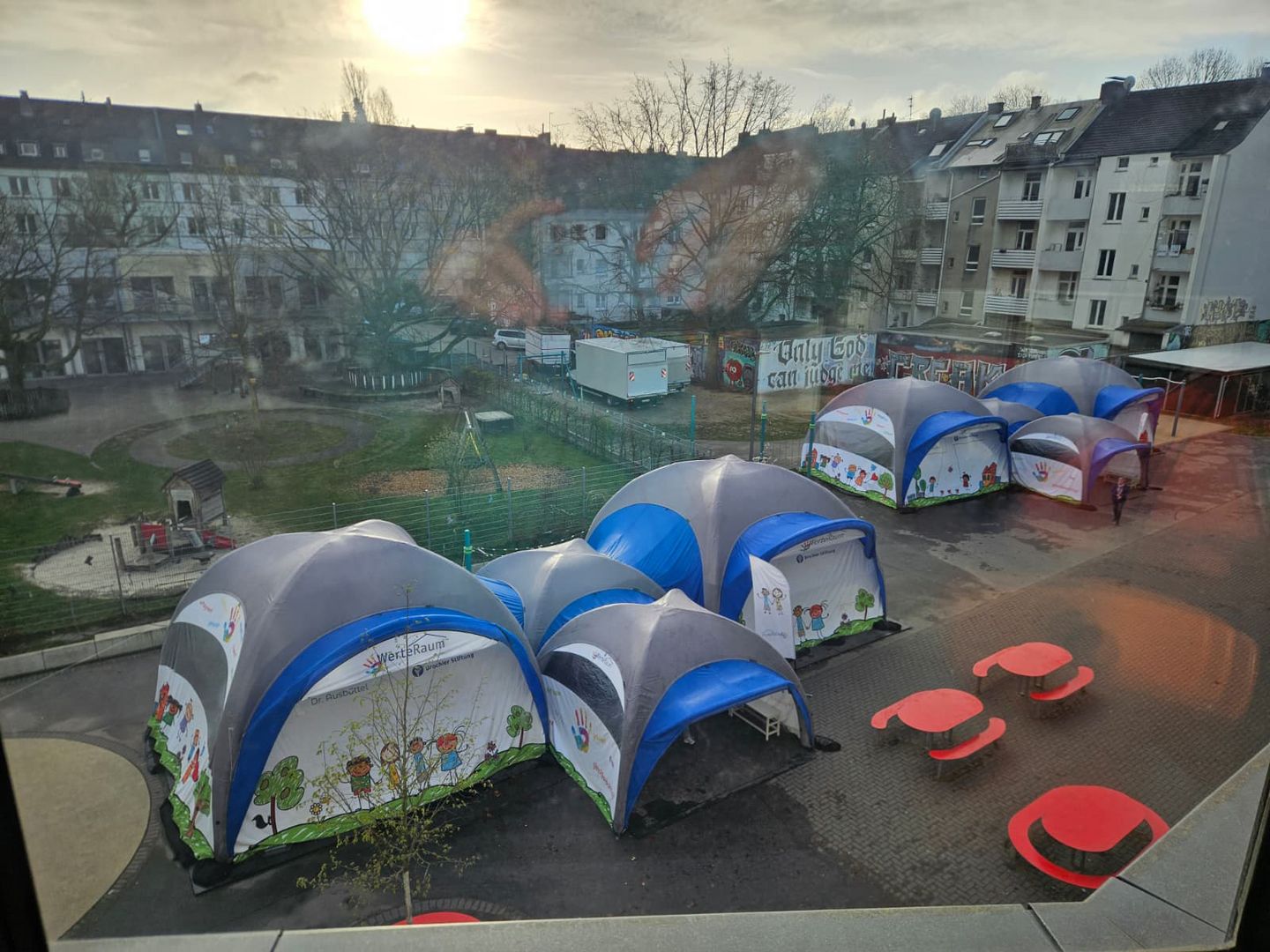 - Als Lernort außerhalb des Klassenzimmers schlagen wir unsere Zelte auf dem Pausenhof auf.