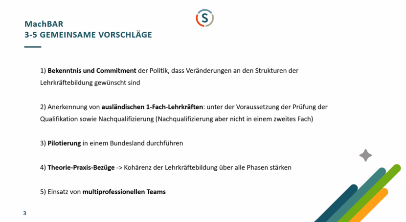 Ziel ist es, Schule nicht mehr als Ort für Einzelkämpfer:innen, sondern für multiprofessionelle Teams zu gestalten, in denen auch ausländische Fachkräfte ihren Platz finden. In Zeiten des zunehmenden Lehrkräftemangels ist es umso wichtiger denn je, die Qualität und Unterrichtsversorgung nachhaltig zu sichern.